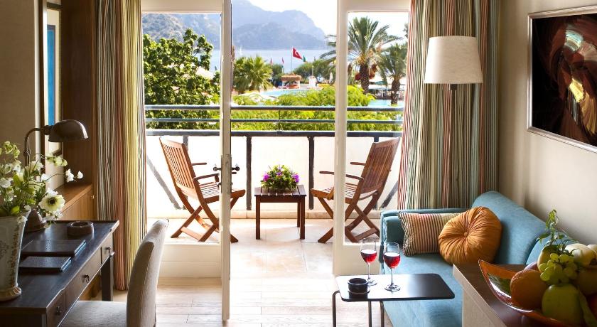 +1 (888) 385-8465Welcome to the luxurious Marti Resort Deluxe Hotel, a 5-star resort nestled in the beautiful city of İçmeler, Turkey. Just 0.6公里 away from the city center, this beachfront oasis offers a stunning location with breathtaking views of the sea. The address is Kumluorencik Mevkii, Marmaris, ensuring easy access to both the city's vibrant attractions and the serene beachfront.