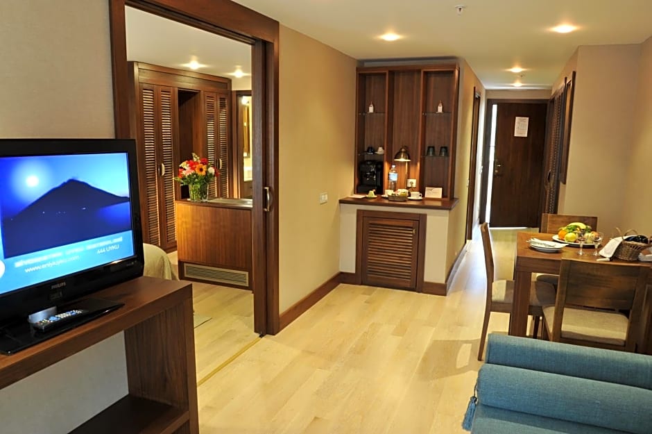 Guests can enjoy the convenience of free Wi-Fi, air conditioning, room service, and stunning views from their own balcony or terrace. The hotel also boasts a 24-hour front desk, non-smoking rooms, a bar, restaurant, and beach umbrellas and chairs for a relaxing day by the sea. For an unforgettable stay in İçmeler, treat yourself to the Marti Resort Deluxe Hotel's exceptional service and amenities.